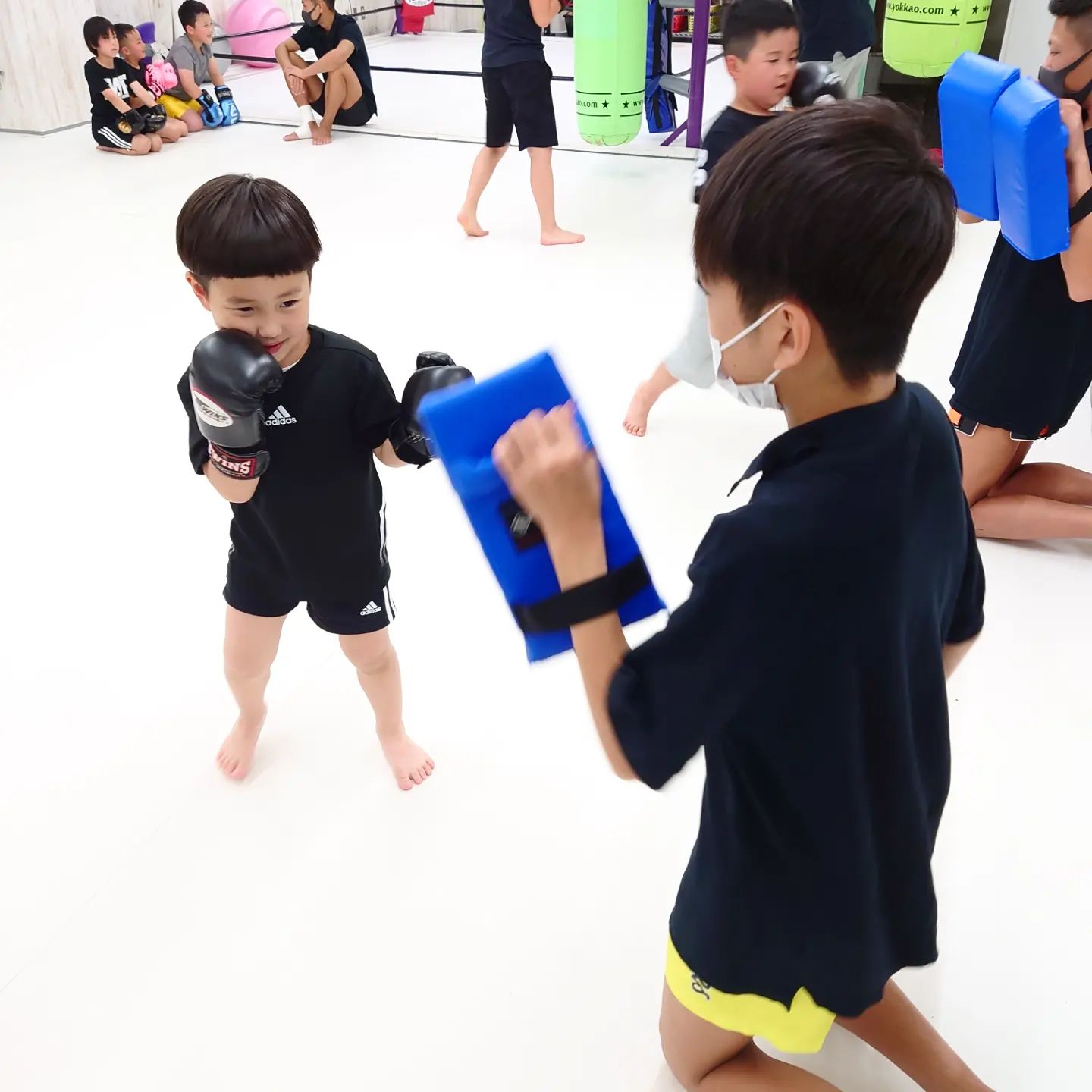 キックボクシングを通じて、挨拶、掃除、運動。礼儀作法や団体行動ができる能力が身に付くよう『楽しく』をテーマに指導していくクラスです。